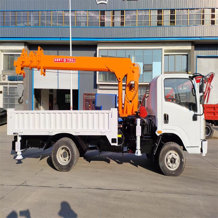 彭阳县重汽豪曼小型四吨直臂蓝牌随车吊厂家 起重机价格